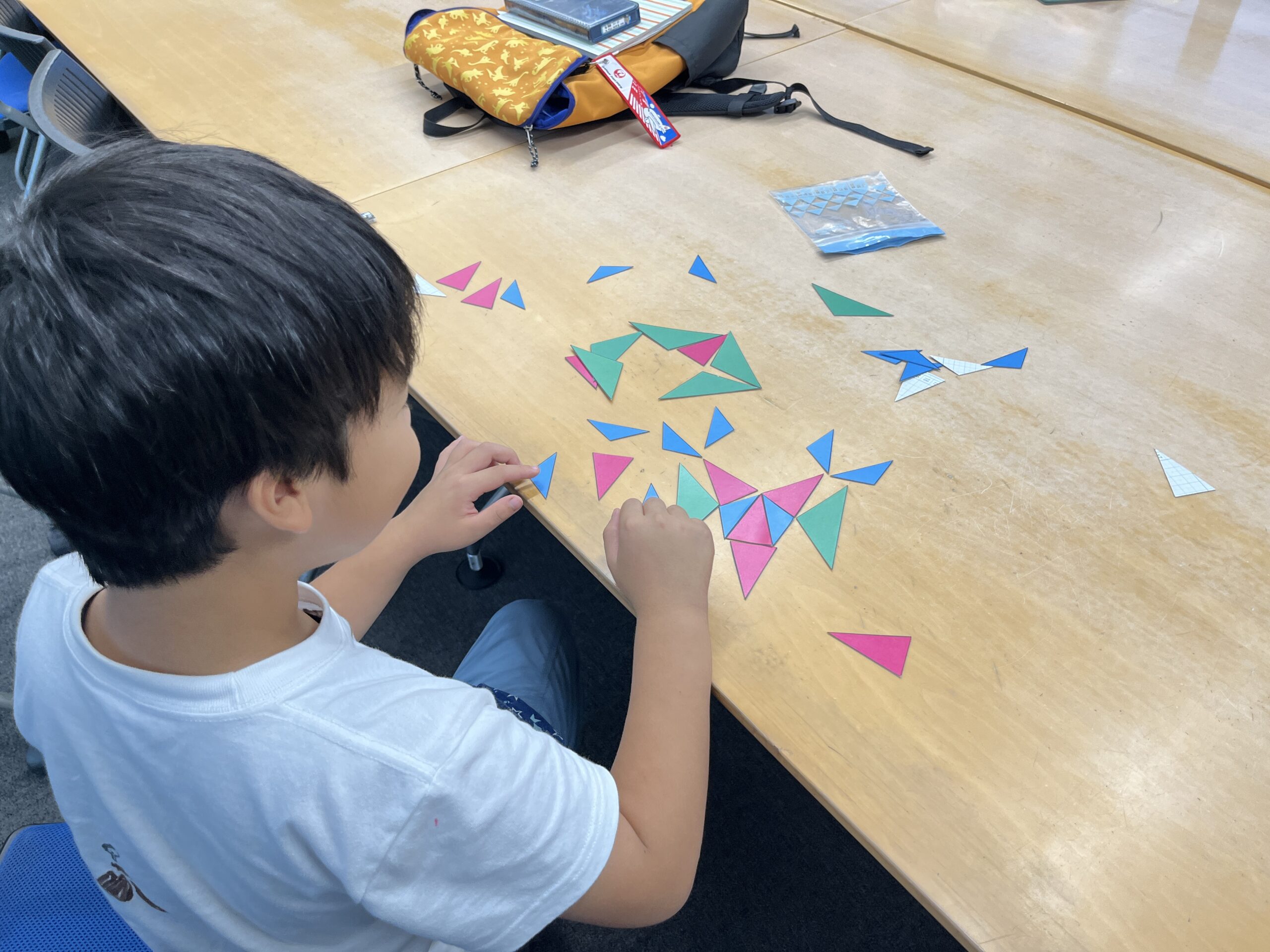 問題を解くだけでなく、折り紙、作図、パズル、ゲームを交え、楽しく学んでいくので、